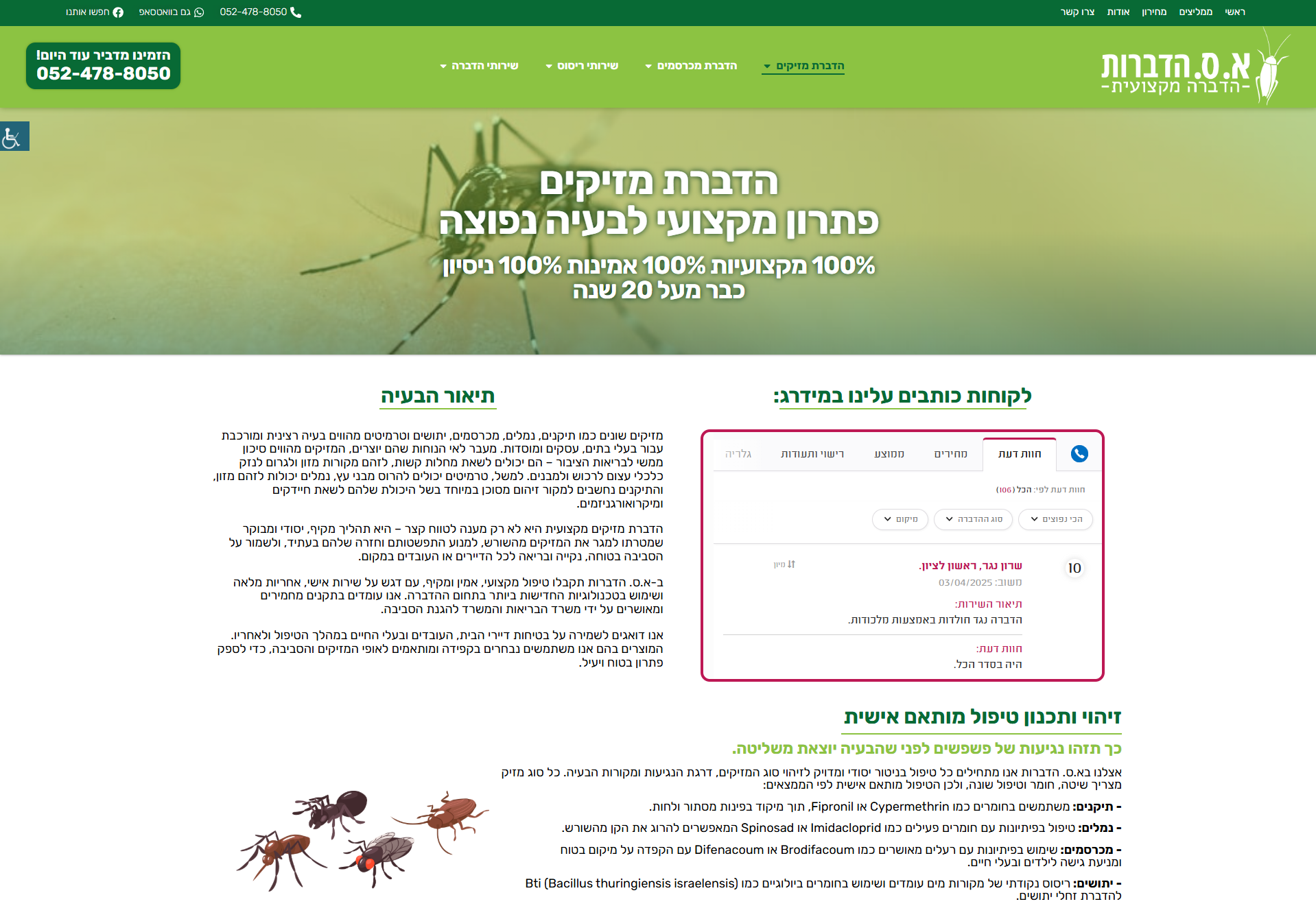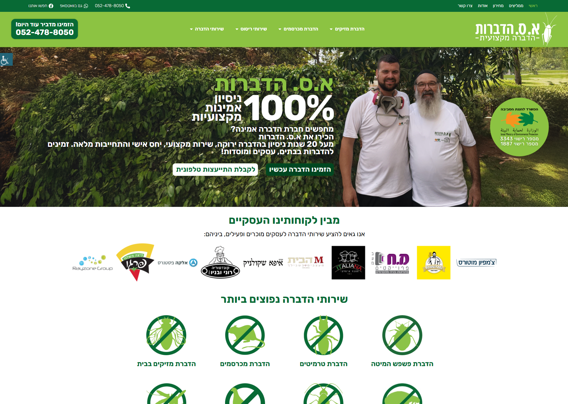 The goal of this project was to design and build a modern, trustworthy, and user-friendly website for Ashadbarot.com, a professional pest management company operating across Israel.